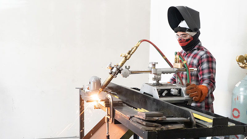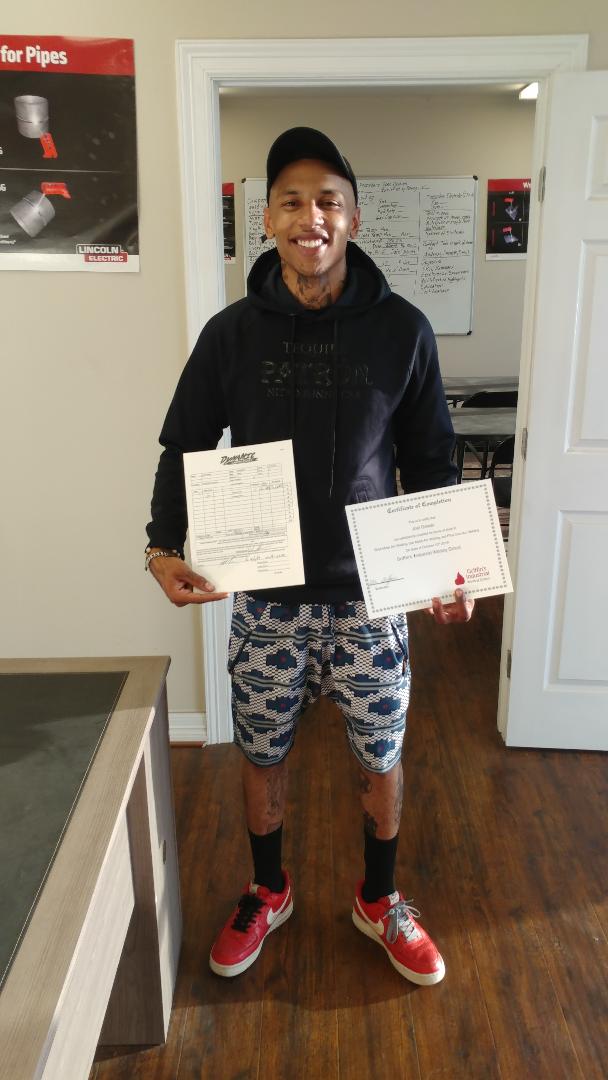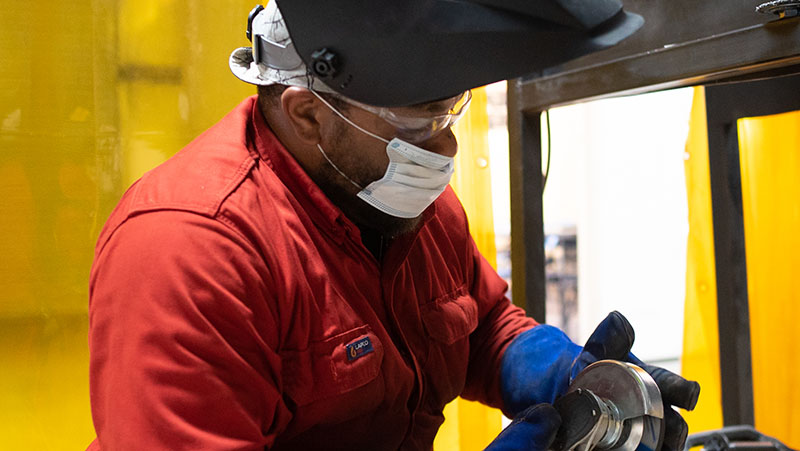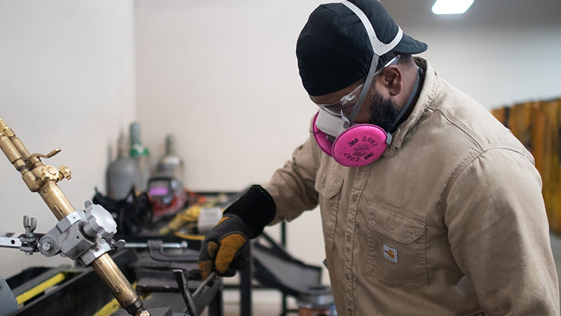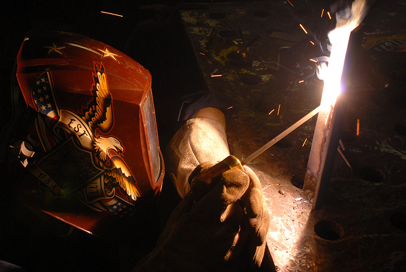 PACIFIC OCEAN (Nov. 6, 2008) Hull Maintenance Technician Fireman Laura Vasher stick welds metal aboard the Nimitz-class aircraft carrier USS Ronald Reagan (CVN 76). Hull maintenance technicians receive special training on different types of welds and brazing. The Ronald Reagan Carrier Strike Group is on a routine deployment in the U.S. 7th Fleet area of responsibility operating in the Western Pacific and Indian oceans. (U.S. Navy photo by Mass Communication Specialist Seaman Apprentice Oliver Cole/Released)